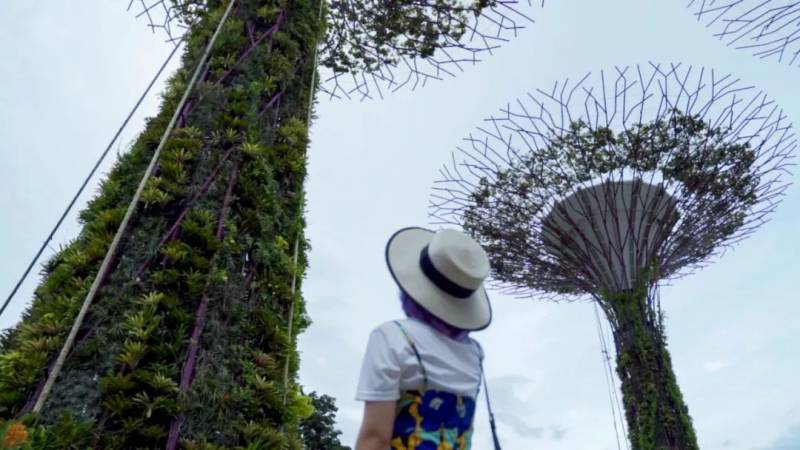 坦白说,最早看到这里的照片,总觉得只是网红打卡点,走过路过拍张照就可以了。但真正走到滨海湾花园,站在这几棵巨树下面,仰头看天的时候,才发现这几棵树是那么美妙与治愈,它比真实的树木多了一分奇幻,又比钢筋建筑多了一分生机。