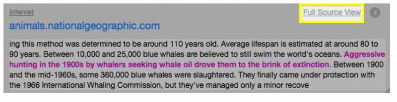 要查看整个存储库来源,请选择"Full source view"连结。这将在"sources"面板中打开"repository source",并包含来源的全文和所有匹配的实例。
