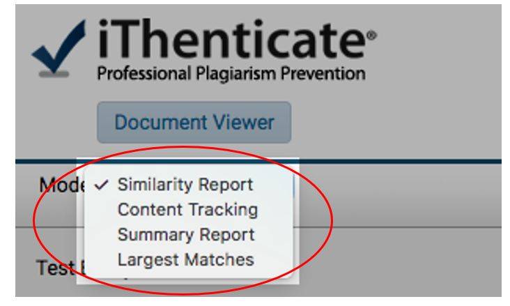 上传论文5-10分钟后,我们就会得到报告。那么要如何查看文本报告结果呢?这时,我们需要点击菜单栏左侧的下拉菜单选择模式。查看四种不同类型的报告。