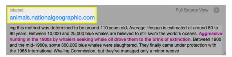 来源视图会突出显示在匹配视图中被隐藏的地方,并详细列出每一条来源文件连结。