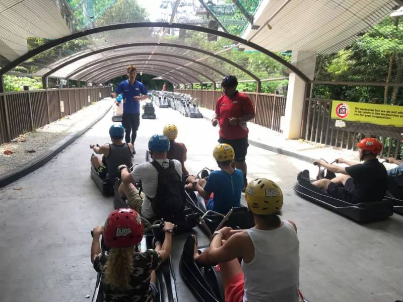 就像它的宣传语一样“Once is not enough”一样,一旦你坐着空中吊椅坐到山顶,从12层楼高度的地方沿着蜿蜒跑道往下滑冲时,小小的刺激,让小朋友很是开心。