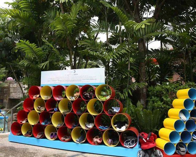 3. 园内各处游乐区都有漂亮的临时存放物品的架子,我就没租柜子,新加坡还真挺安全的。