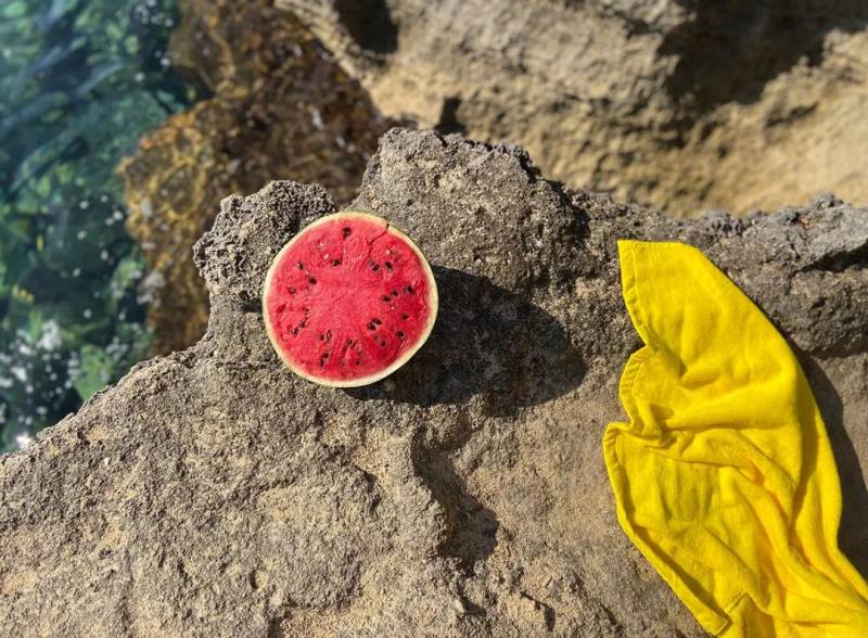 iPhone 11在色彩表现上还是一如既往的保持“真”的色彩,并没有通过过度提高照片饱和度来制造效果,下面这张图上看,西瓜的红,衣服的黄都显得蛮有质感的,悬崖与海水有比较明显的景深效果