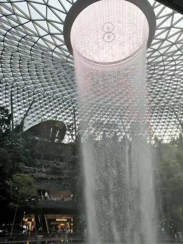 樟宜机场必到的网红打卡点,机场内的巨型瀑布~真的很震撼!