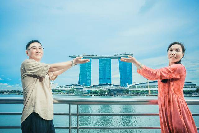 金沙酒店号称是当今世界上最昂贵的酒店,耗资40亿英镑打造。虽然酒店开业距今已有八年,但一点也感觉不到陈旧,外观依然耀眼。爸爸妈妈就像是两个大龄儿童,玩心特别重,看到金沙酒店船的造型,便开始各种创意拍摄。