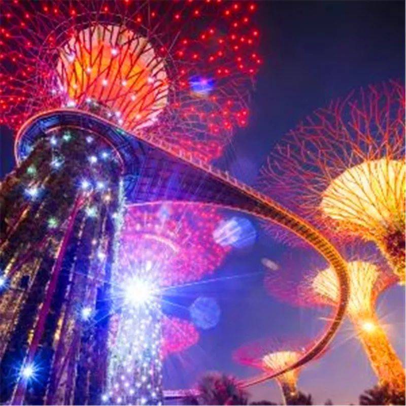 在这里不仅可以参观植物冷室中超过25万棵的奇花异草、漫步人工湖泊旁欣赏远处的巨大摩天轮,还可以登上超级树的空中走廊、在造型前卫的擎天树丛中穿行,其精彩程度绝对超乎你的想像。