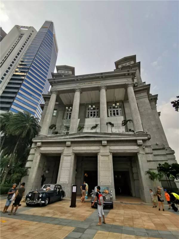 这是离鱼尾狮最近的酒店,门口两辆老爷车估计是接待重要嘉宾使用的