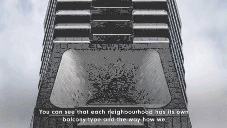 “垂直框架"使得这座住宅楼的建筑更为城市化。该结构将4簇住宅楼群分成不同邻域,均设计用于多功能和定制生活,为该建筑提供了垂直城市化效果。