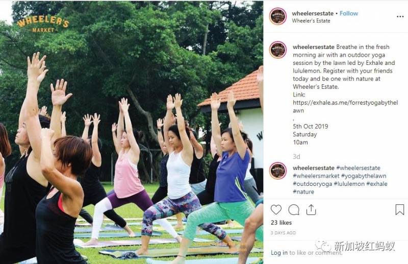 咖啡馆也会不定期的举办户外集团活动,像是早晨的大型瑜伽活动。