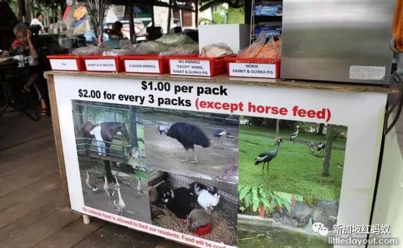 蚁粉若是有机会到那里参观,可以向柜台购买不同种类的“饲料”,亲自喂食动物,与它们近距离互动。饲料的价格为一包一元,三包两元(干草除外)。