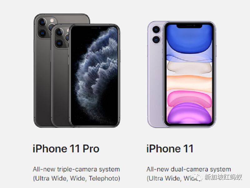 iPhone 11则是早前iPhone XR的升级款。它采用6.1英寸LCD屏,机背的镜头从一个变成两个(广角和超广角)。而且是三款新手机里最便宜的,价格比前辈XR便宜了50美元(约69新元)。