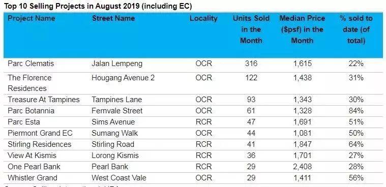 从分析数据可以清晰看出,8月份销量最高的私人项目就是位于金文泰地段的锦泰门第(Parc Clematis),中位数尺价在1615新元,售出316个单位。