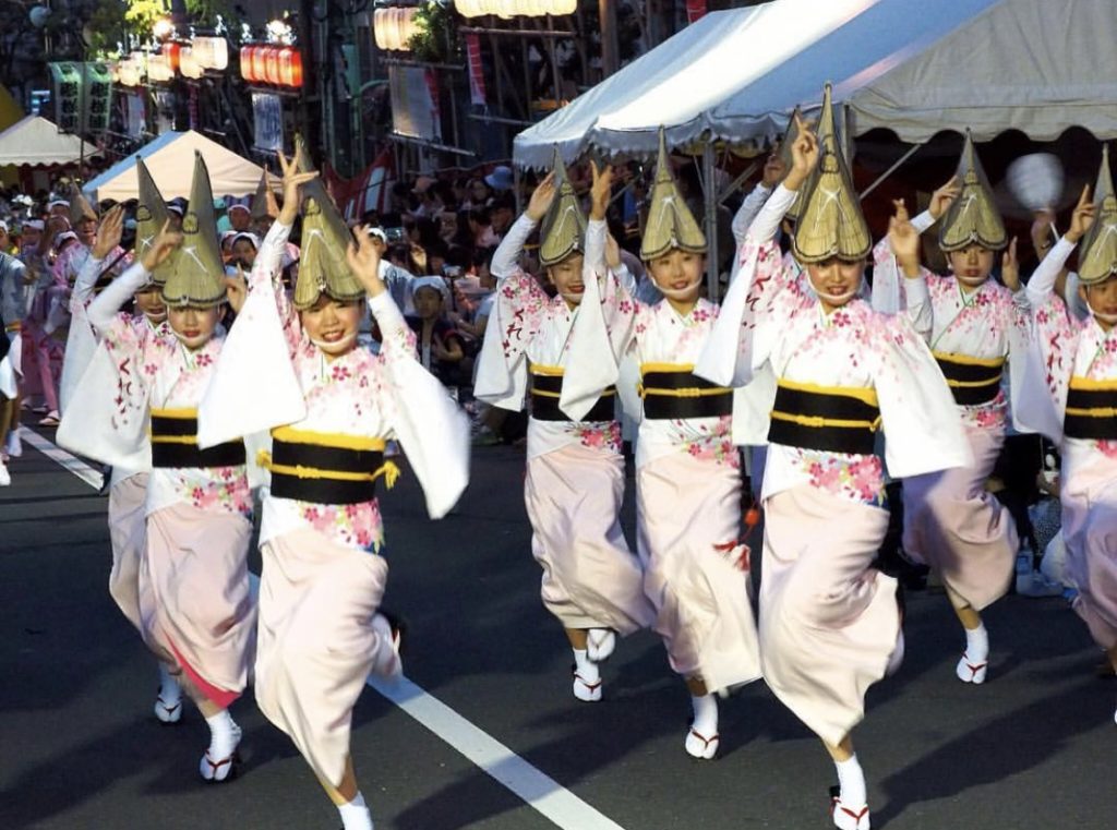 随着大太鼓、钟、缔太鼓、三味线等乐器的节奏翩翩起舞