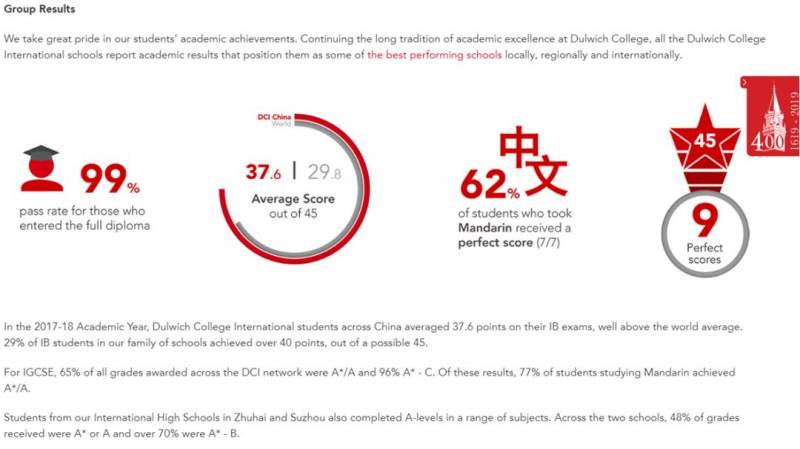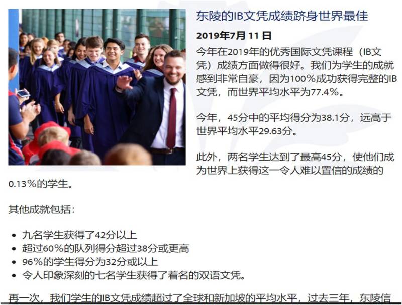 八分之一考生荣获42分及以上,四分之一考生荣获40分及以上,一半考生荣获37分及以上,并以十分之三考生荣获双语文凭,所有学生的考试平均分位居全球领先,这个分数足以让他们进入世界顶尖大学就读。