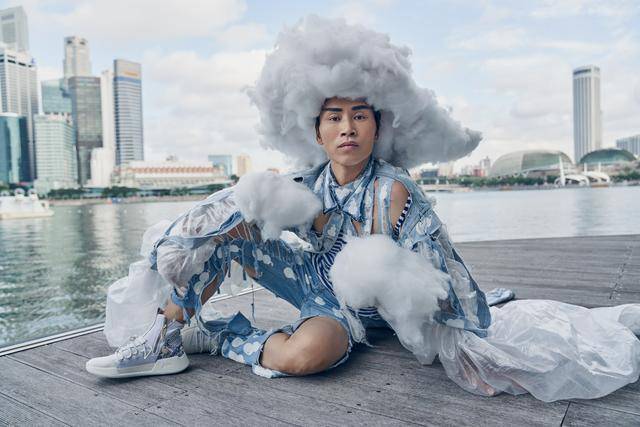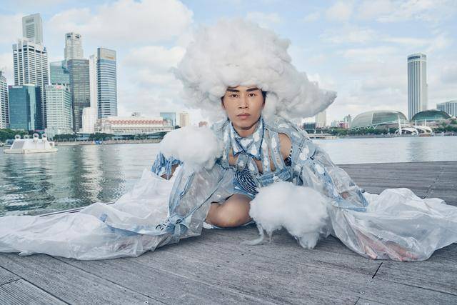 行为艺术家万云峰为呼吁环保在新加坡走秀