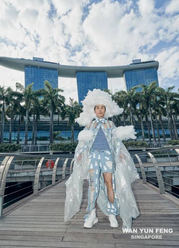 2019年8月,万云峰新作“云庭”在新加坡完成拍摄。这次以新加坡帆船酒店为背景走秀并拍摄环保行为艺术大片,其目的就是为了宣传环保,希望地球每一个角落都能拥有美丽的云彩,苍穹、震撼、叹为观止。