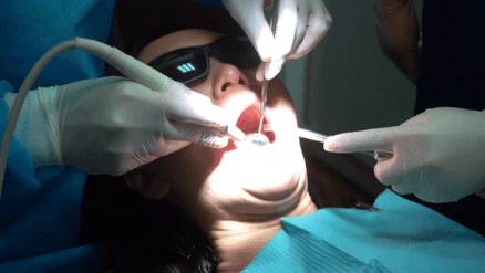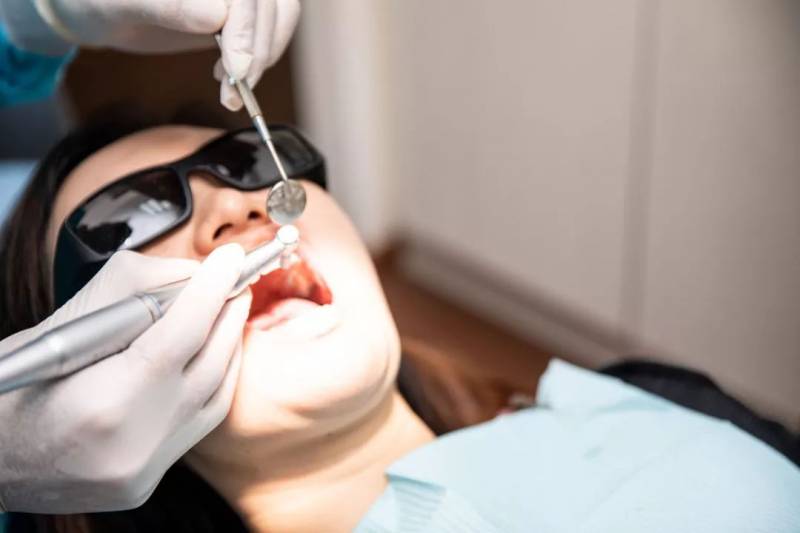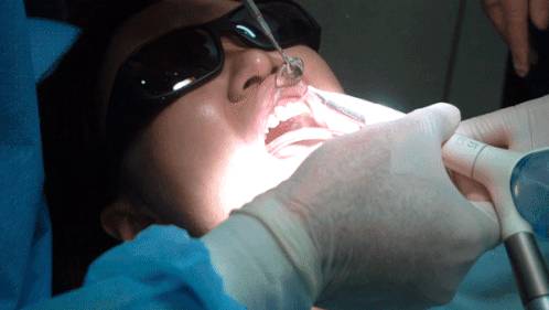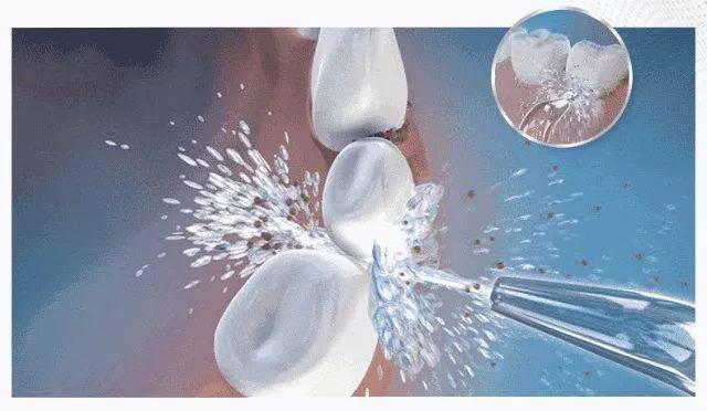 在洗牙的过程中,洁牙师会用超声波洁牙机对每一颗牙进行清洁,通过高频率的振荡将附着于牙面上的牙石去除,并用水将震碎的牙石冲走,旁边的护士小姐姐还会拿吸唾管贴心地将口中的水吸走。