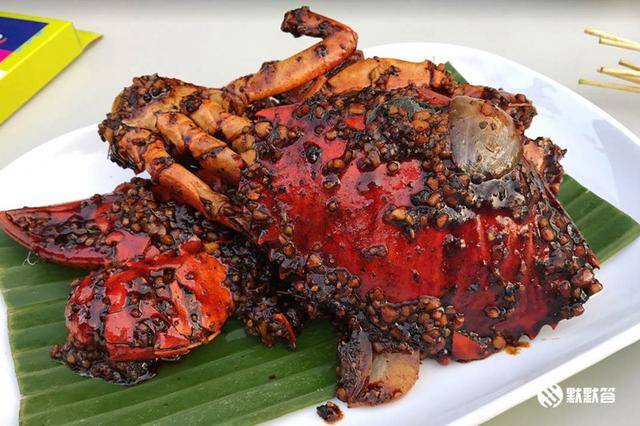 黑胡椒蟹与辣椒螃蟹不同的是没有汁!!厨师将螃蟹与大蒜、姜、辣椒和洋葱一起爆炒,再加入最重要的黑胡椒翻炒,使得每块蟹肉都能驻入黑胡椒,每一口都可以吃到新鲜黑胡椒蟹。