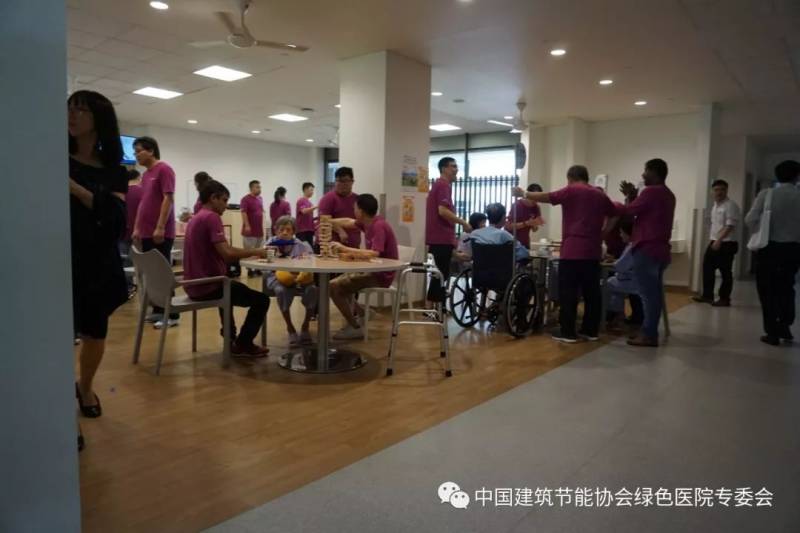 交流考察团与CIAP集团交流并考察义顺社区医院。义顺社区医院是新加坡最大的社区医院之一,以中间护理医疗为主,为术后或疗养患者提供护理康复服务。该医院被称为“热带雨林中的医院”,以病人为中心,鼓励患者改善健康,完全康复后回家。该医院与社区合作,与每个患者和家庭合作,对他们进行教育和培训,使他们能够学习到科学养老的方法,并将医疗保健带入家庭。