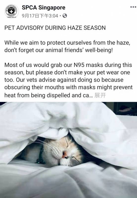 新加坡防止虐待动物协会提醒:不要给动物戴N95口罩啦!