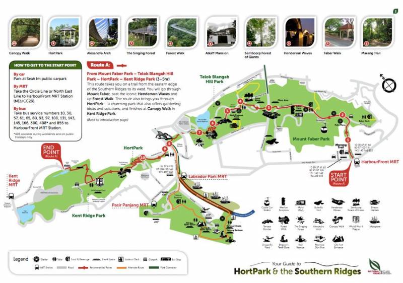 总长约 10 km的这条路线,会带你穿越四个公园:Mount Faber、Telok Blangah Hill Park、Hort Park和Kent Ridge Park。