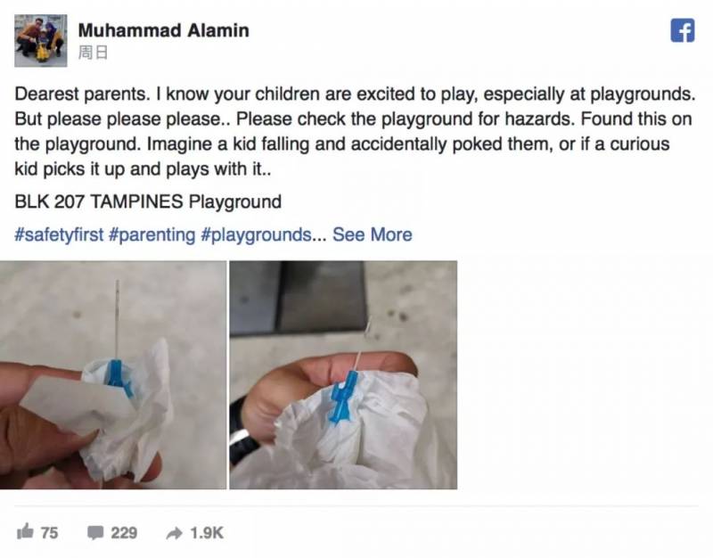9月15日,有人居然在新加坡淡滨尼的游乐场里捡到的一个塑料针管!
