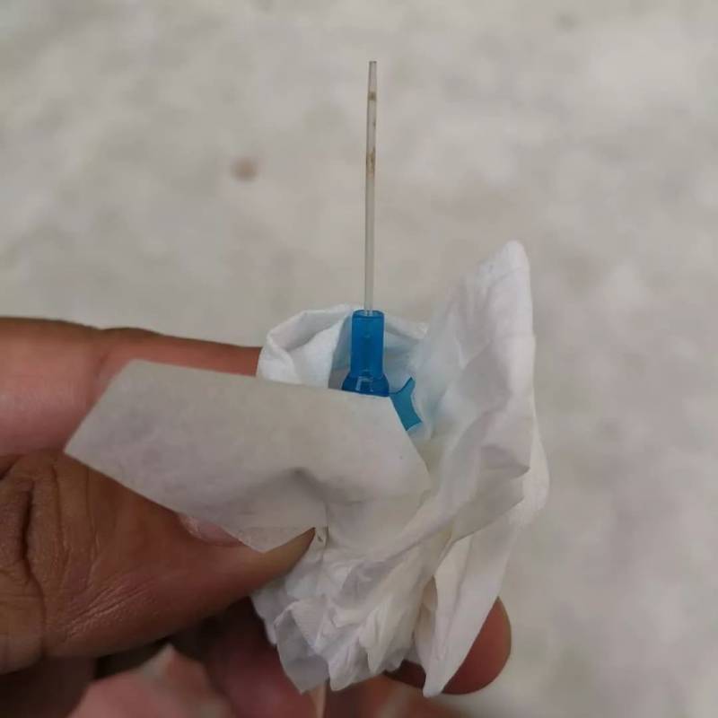很明显这是一个医用静脉注射(IV)针导管,仔细看,还能隐约看到血迹。