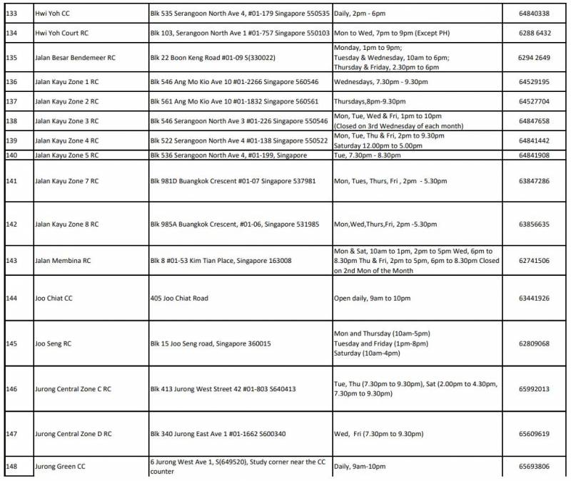 新加坡约380个社区俱乐部(CC),居民委员会(RC)和居民网络(RN)中心为备考学生们腾出冷气房间,在特定时间开放供学生复习。