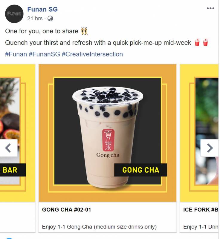 目前贡茶funan店推出了中杯奶茶买一送一的活动