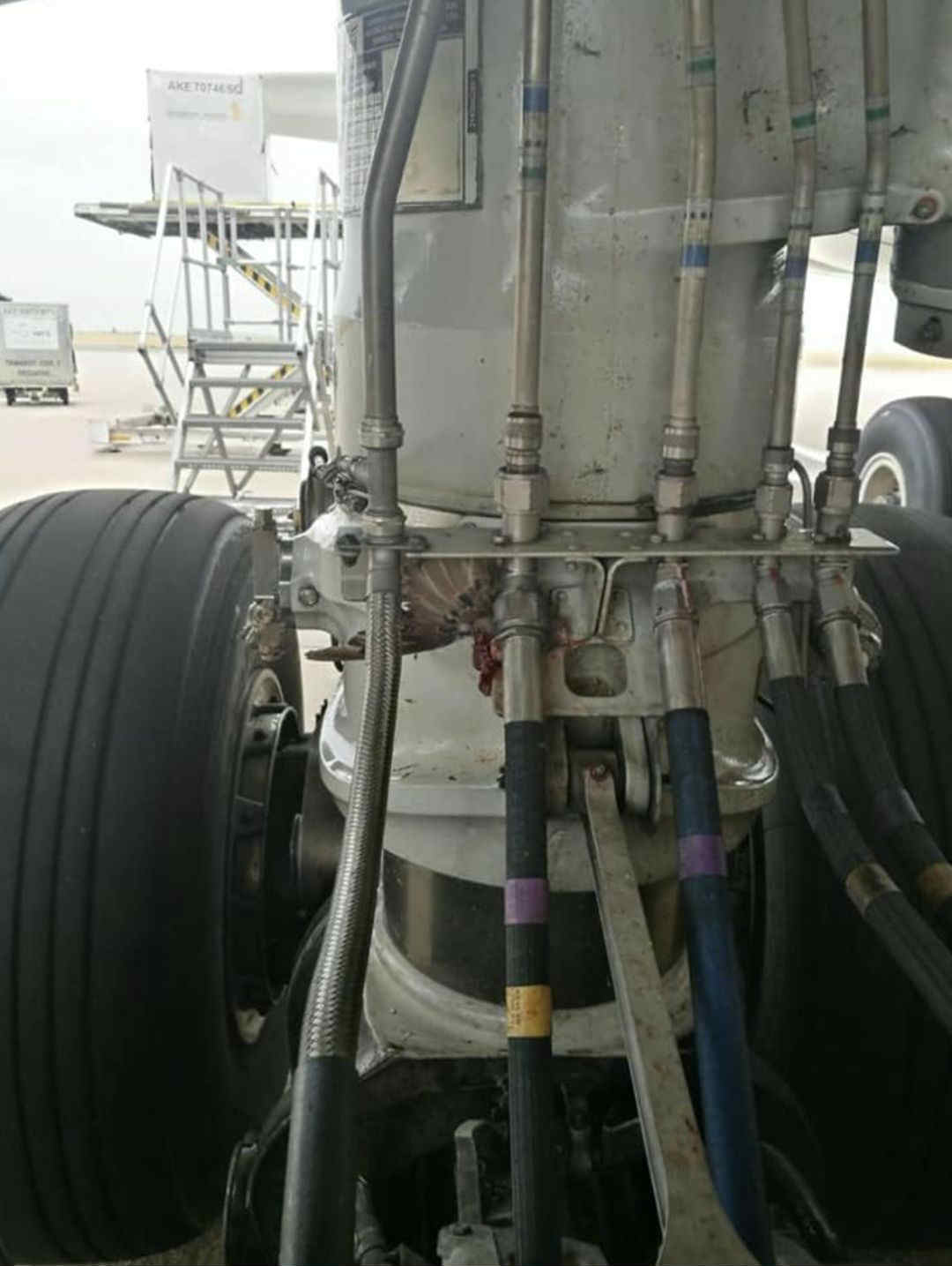 飞机的机翼上也血迹斑斑…….