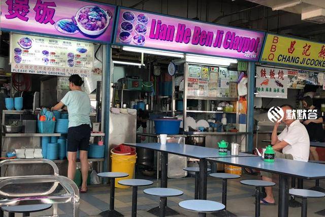 联合本记砂煲饭“Lian He Ben Ji Clay Pot Rice”就在牛车水大厦二楼,每到饭点,摊位前方的一整排桌子,每桌都会买这家的砂煲饭。
