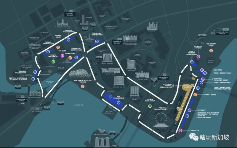 本次F1新加坡夜间公路赛,新加坡赛段的路线如下图:
