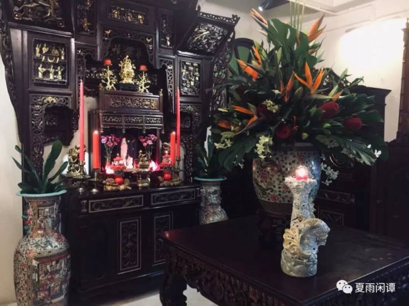 餐厅不大,很私家。进门就是一个典型的佛堂,还有当年马来的老物件展览,也有人钢琴伴奏。餐厅的墙上不少猜想是当年下南洋期间的照片。