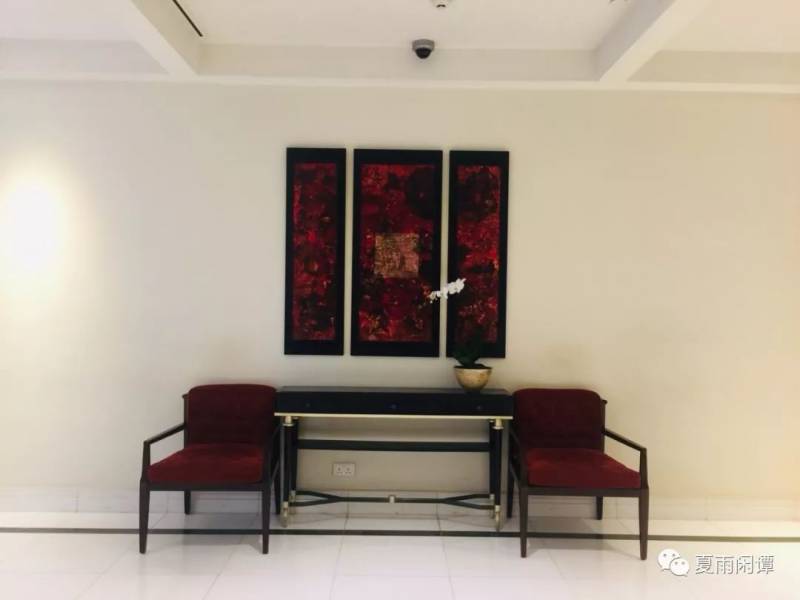 这个酒店外表看起来不出众,一个门童,好像是印度人,帽子上还插著一个长长的羽毛。里面的装修却很典雅,很传统。没有些酒店那样的前台,只是一间间小客厅似的前台,你可以坐着办入住手续。