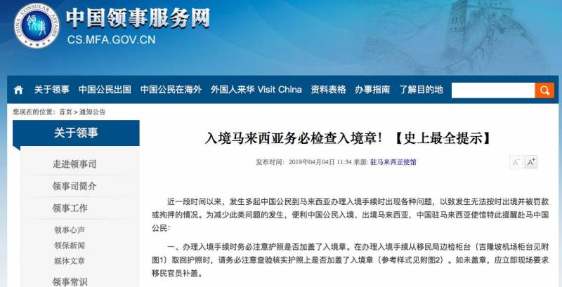在今年4月的时候,中国领事服务网就曾发布通知,提醒广大中国公民在入境马来西亚的时候一定要检查护照的入境章。