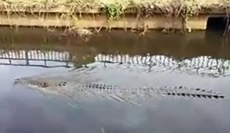 8视界新闻一名读者透过热线传来约50秒的视频,当中可见一只目测至少两米长的巨型鳄鱼,正缓缓地从水道中游过。