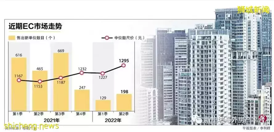 据本报报道,5月份六个新私宅销售的中位数尺价,就有四个超过2000元,最高达到2405元。就算为夹心层推出的执行共管公寓(EC)房价也是持续走高,今年第二季中位数尺价已逼近1300元大关,较去年第一季大涨约11%。