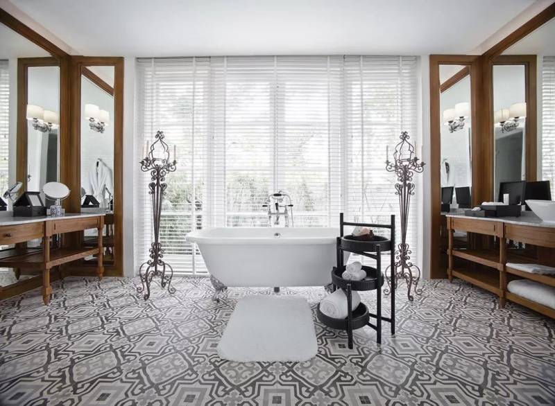 所有房间都面向大海,黑白色调,散发着殖民地风的高级感