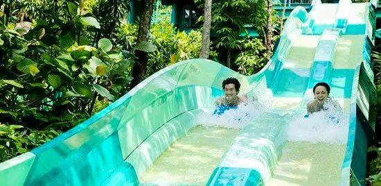 如果说玩水的话,这里绝对是专业的,光是水上滑道就有多种花样:挑战速度的飞跃极限滑道,东南亚首个水流磁力过山车喷射滑道,旋转速降的激流滑道和螺旋滑道;