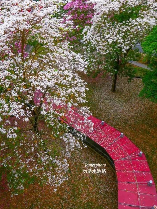 落了一地的花瓣就像一张粉色地毯,有一种身处偶像剧的感觉~