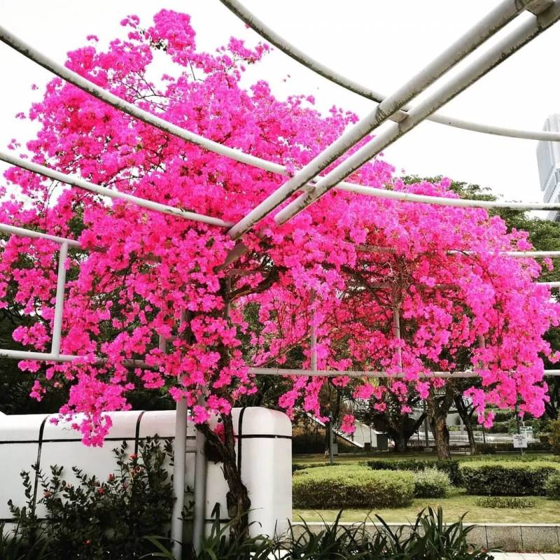 从多美歌地铁站出来一眼望见大片粉色九重葛花,在新加坡也是随处可见。