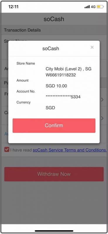 用手机提现,每笔交易最低金额是10新币,每天的提款限额很高,最多可以取600新币,绝对满足日常所需。每月最高交易限额为5000新币,每年最高交易限额为10000新币。