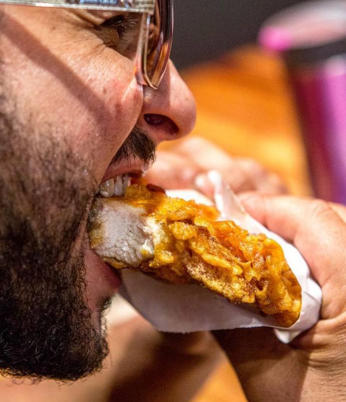加入辣椒粉的鸡排香气最为浓郁,初入口时不会辛辣,但后劲却缓缓而发,让人上瘾。