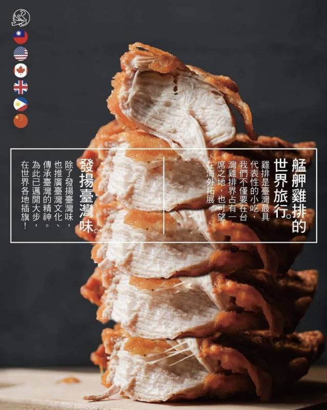 目前,艋胛鸡排在台湾有超过45间门店,并且拓展到美国、加拿大、菲律宾和马来西亚,这个九月,也会正式登陆新加坡!