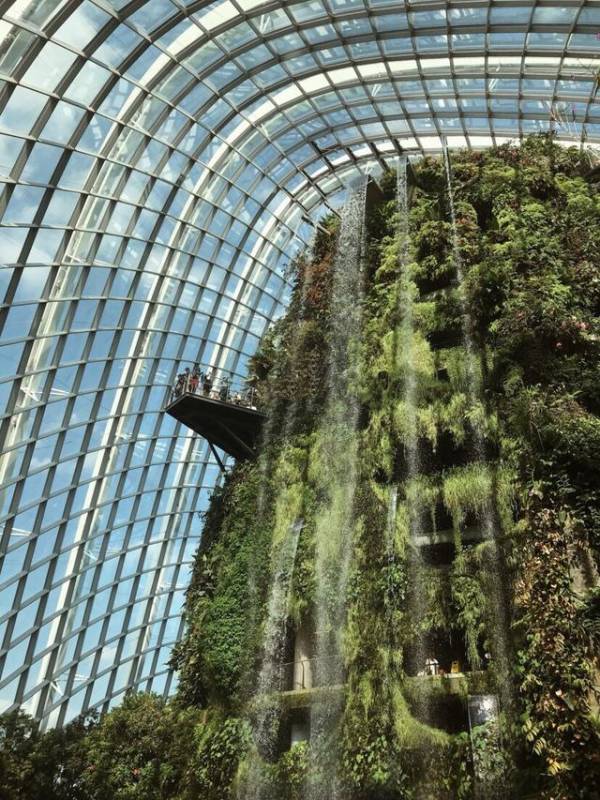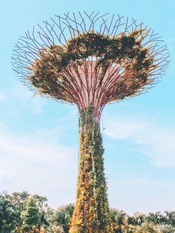 推荐游园时间为黄昏前,先往冷室细赏花草,然后漫步长廊,再在长达128米长的空中步道,22米高的步道穿梭在造型前卫的Solar Supertrees之间,将新加坡市景一览无遗