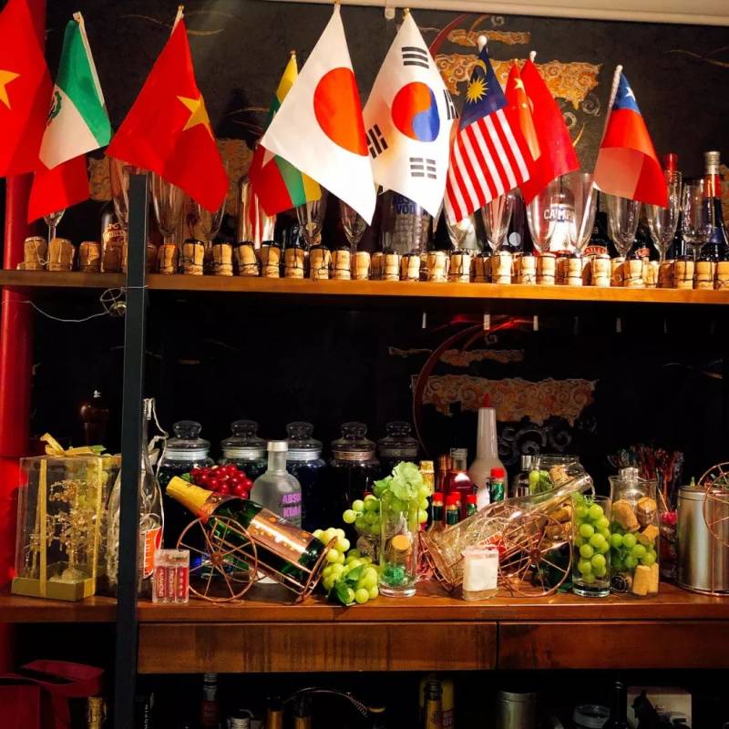 学校的餐厅里还有一个“小酒吧”,O(∩_∩)O,充满了意境,这是调酒bar的一角,ps:未成年人不能喝酒哦。