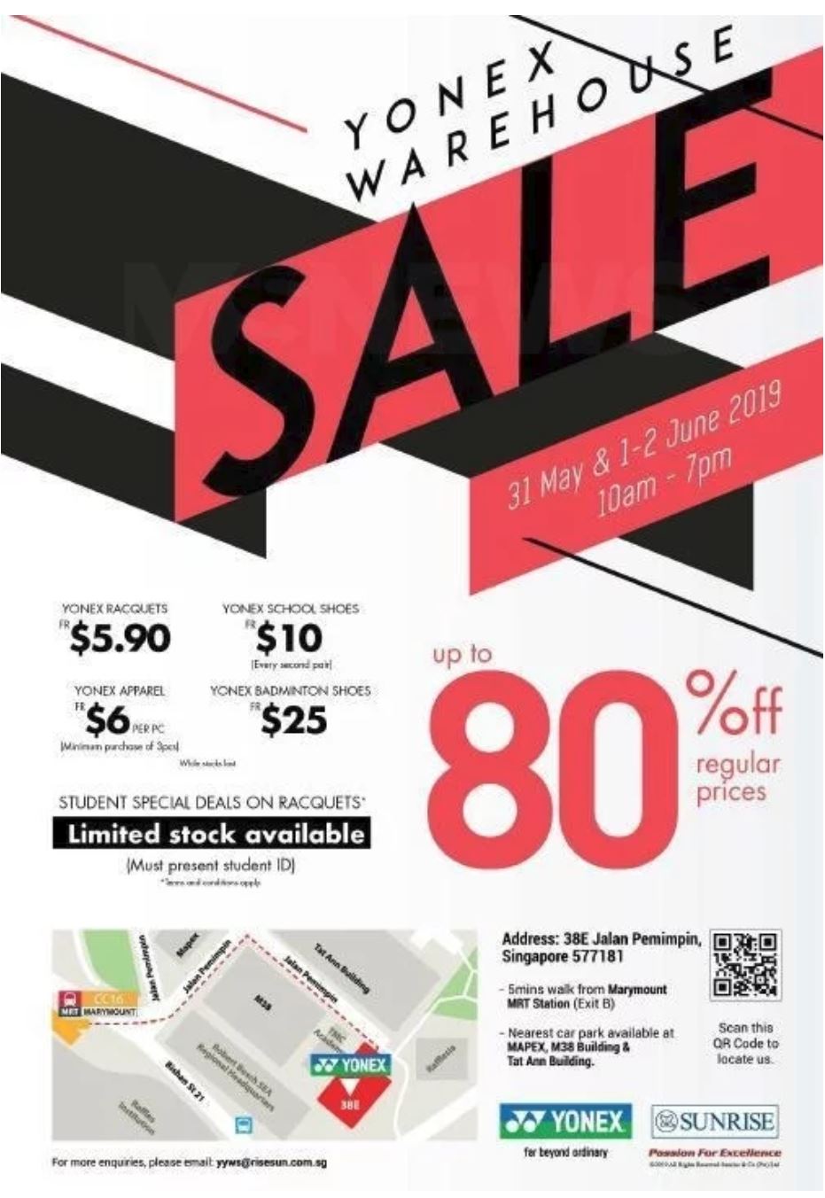 3.Yonex2019年中仓库大促来啦!低至2折!球拍S$5.9起!