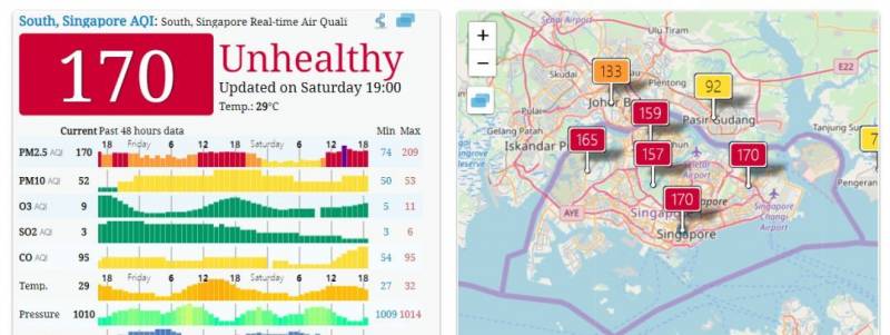 在新加坡国家环境局网站上有两个实时更新的空气污染指数的指标,分别是PSI和PM2.5。