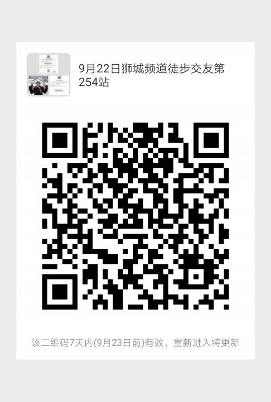 请扫描狮城频道徒步交友第254站的二维码参加,徒步后聚餐交友,欢迎小伙伴们一起来认识更多朋友吧!!