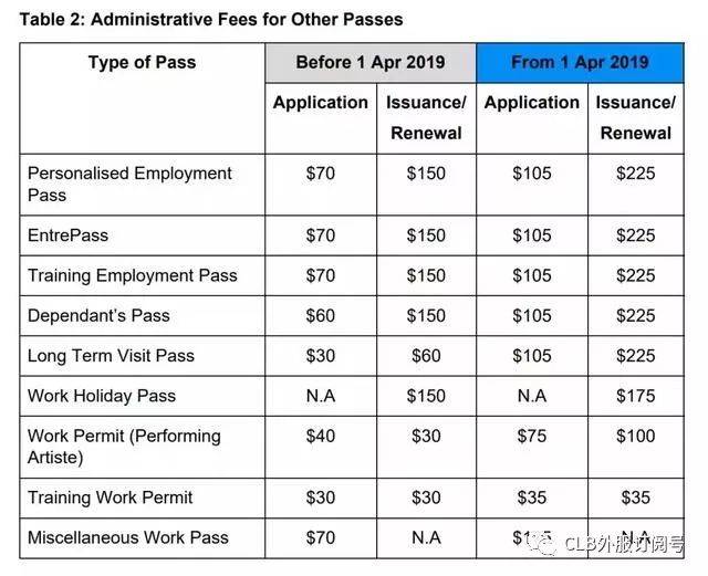 除了上述工作准证,家属准证、长期访问通行证等的办理行政费用也有不同程度的上涨,持有这些准证也是可以在新加坡工作的。